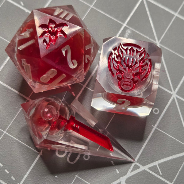 -Special themed symbols on the high face of each die painted to match the materia inside.